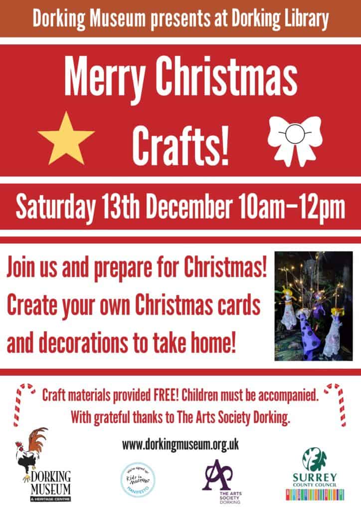 Dorking Museum will be open on Saturday 20 December and will then be closed until Saturday 3 January 2026.