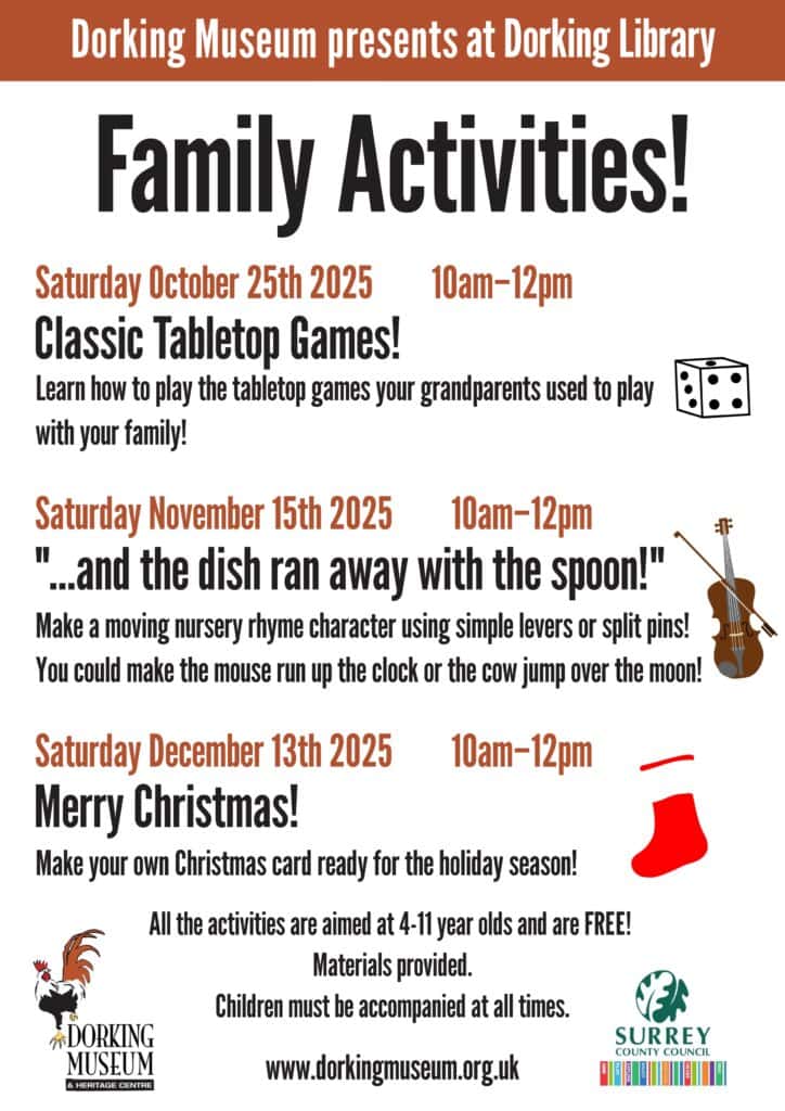 Dorking Museum runs family activities for younger children once a month at Dorking Library