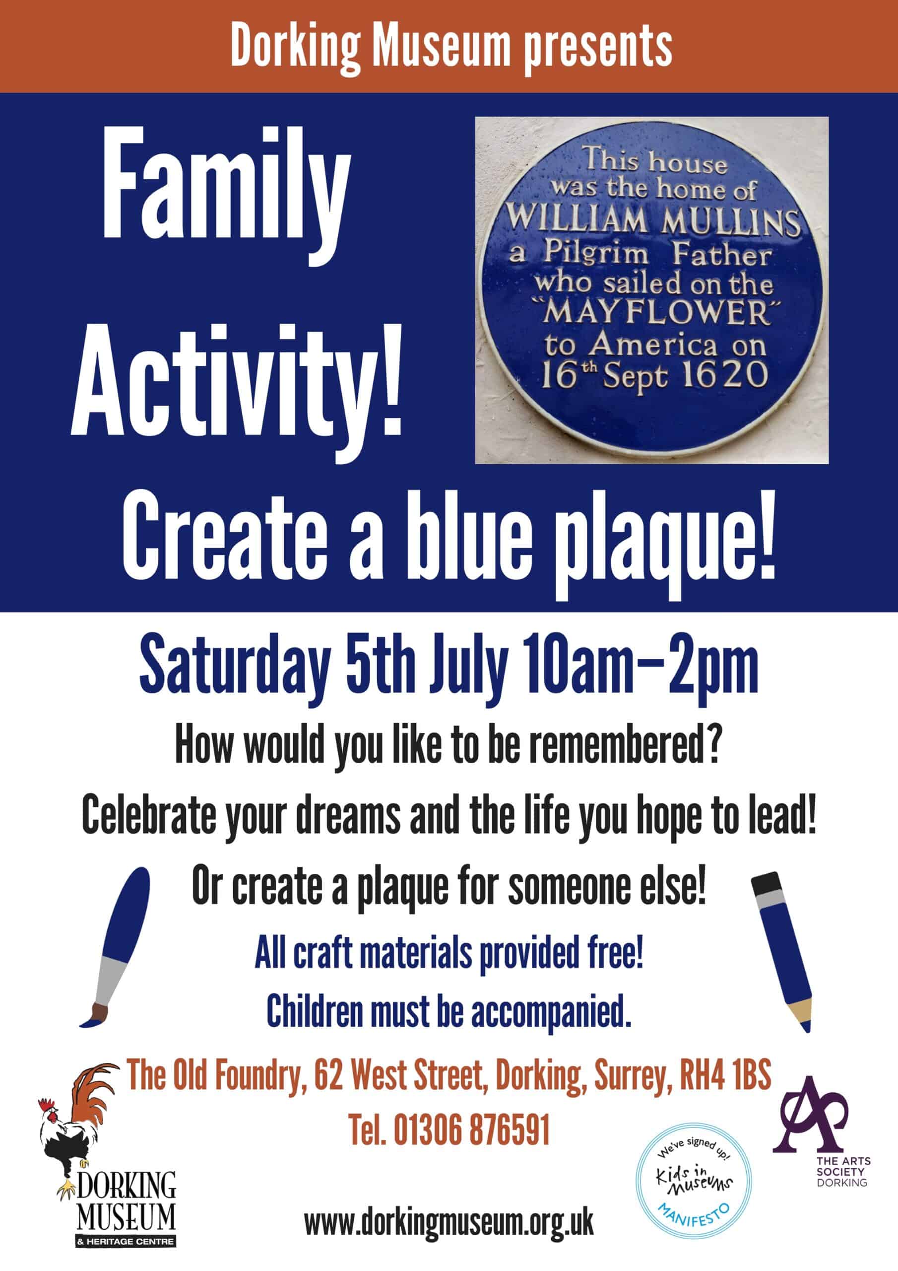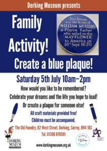 Blue Plaques Family Activity Dorking Museum Poster – July 2025