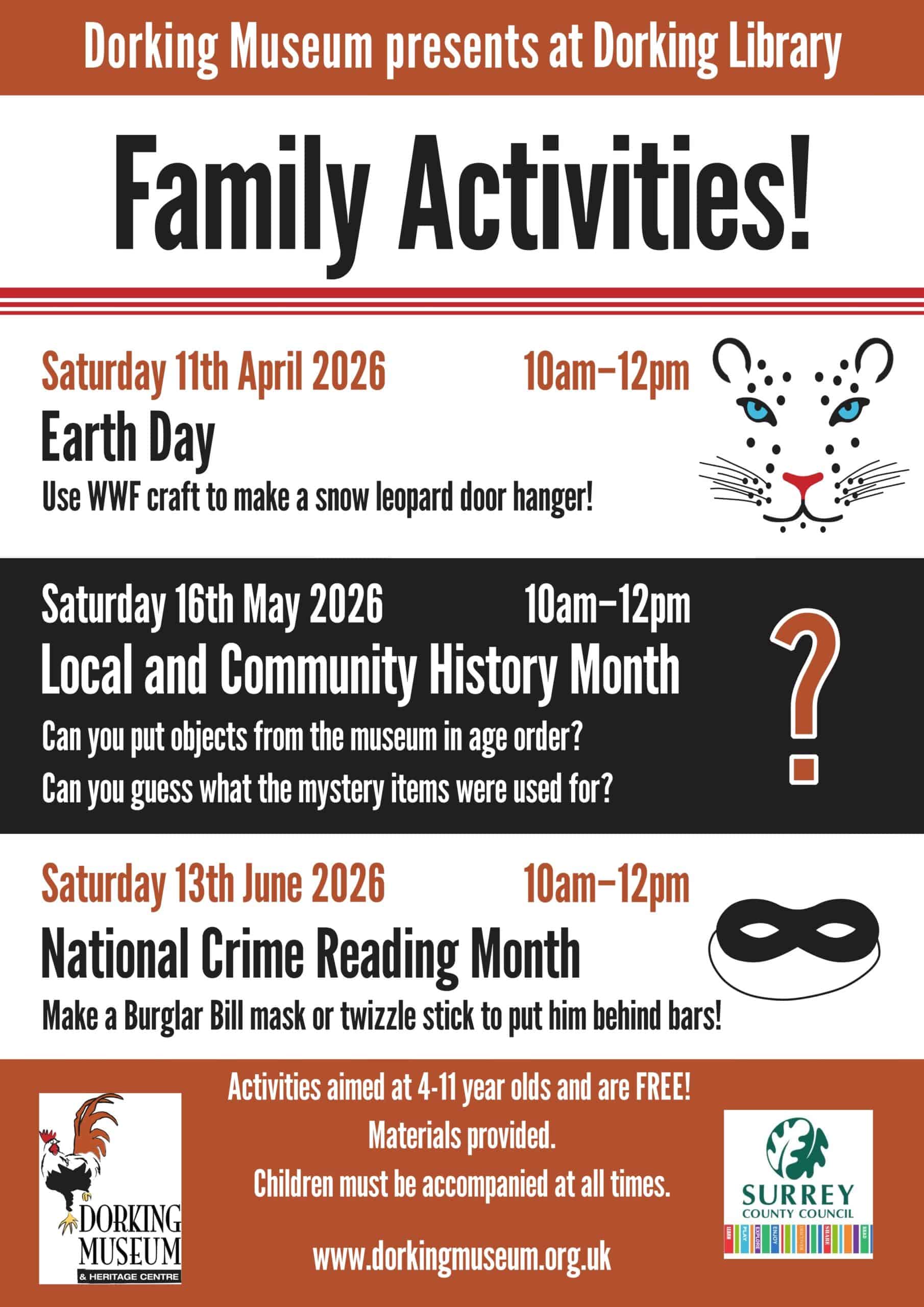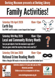 Family Activities Poster Dorking Museum – April-June 2026